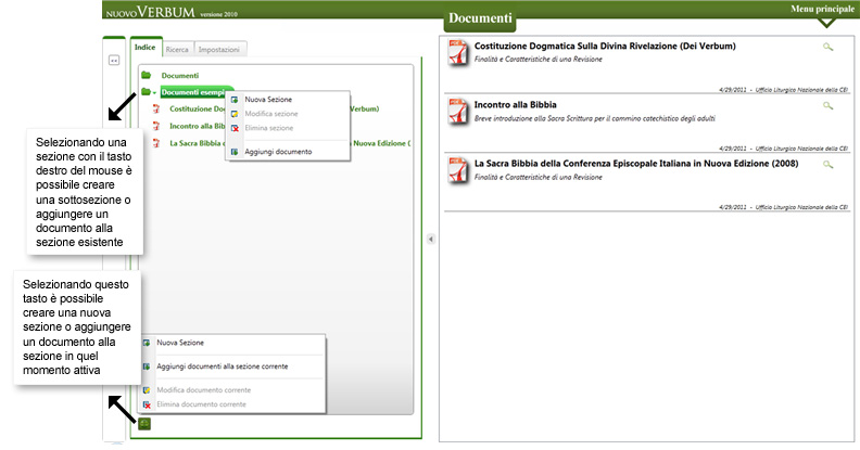Inserire documenti e creare nuove sezioni è estremamente semplice