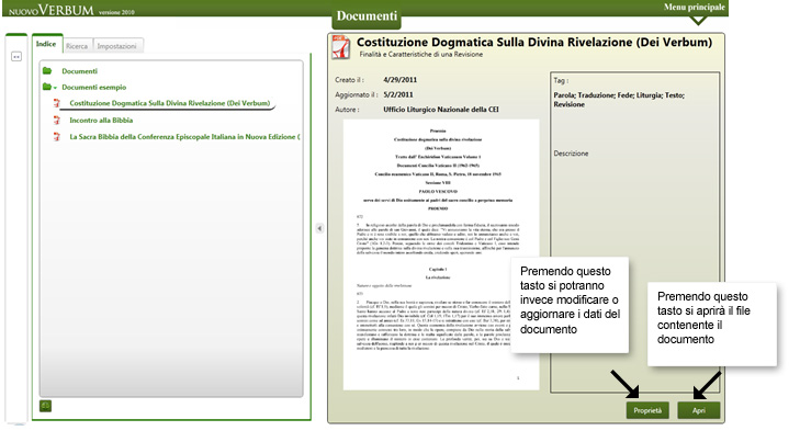 Il modulo DOCUMENTI di Nuovo Verbum permette di raccogliere e catalogare i propri documenti (ad esempio relazioni, lettere, lezioni, atti di convegni) creando una vera e propria biblioteca personale. Queste brevi note vi guideranno alla scoperta delle funzionalità previste affinché possiate apprezzarne e utilizzarne appieno le potenzialità.